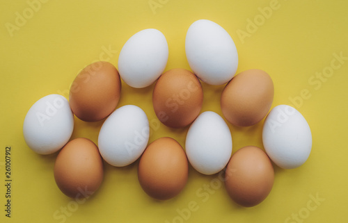 Many eggs on a yellow background.