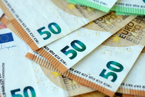 Many real european euro banknotes in big pile