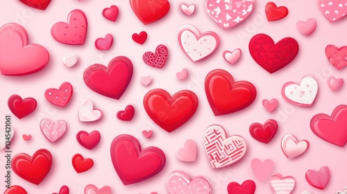 Many Red And Pink Hearts Are Scattered On A Light Background