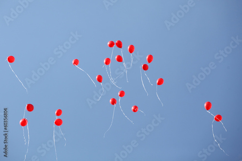 Many red balloons in the sky