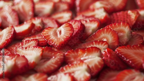 Many slices of strawberry. Plate of sliced strawberries