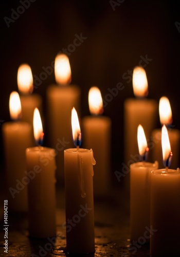 Many White Candles Burning in the Dark