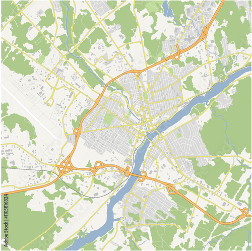 Map of Bangor in Maine in a normal road map style. Contains layered vector with roads water, parks, etc.