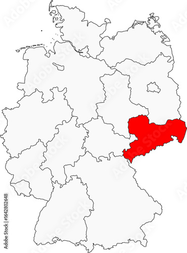 Map of Germany highlighting the state of Saxony. Ideal for projects on its cultural heritage, historic cities like Dresden and Leipzig, and the Ore Mountains
