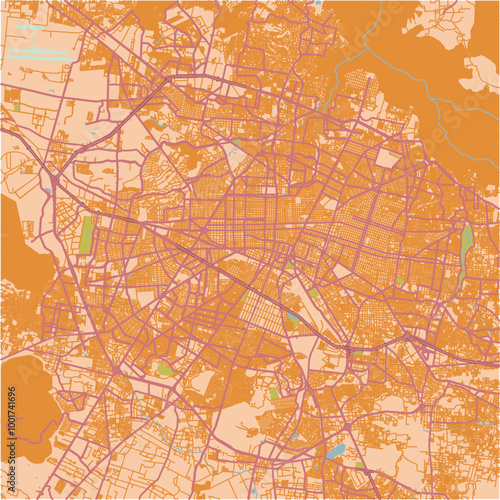 Map of Guadalajara in Mexico in a sandy theme. Contains layered vector with roads water, parks, etc.