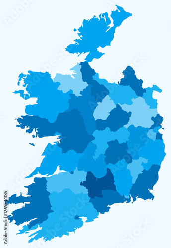 Map of Ireland with regions. Just a simple country border map with region division. Light blue color palette. Blank Ireland shape with administrative division. Vector illustration.