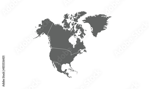 Map of North America isolated on white background. for website layouts, background, education, precise, customizable, Travel worldwide, map silhouette backdrop, earth geography, political, reports.