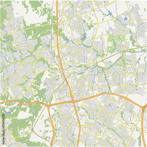 Map of Round Rock in Texas in a normal road map style. Contains layered vector with roads water, parks, etc.