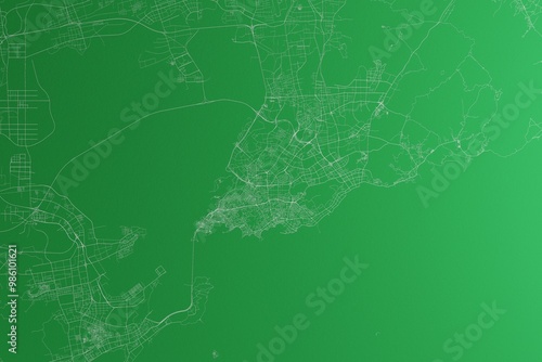 Map of the streets of Qingdao (China) made with white lines on green paper. Rough background. 3d render, illustration