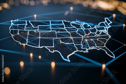 Map of the United States is lit up with a blue and white color scheme