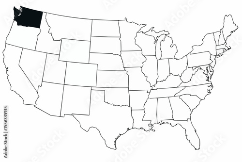 Map of Washington State in United States country on white background. Single State map highlighted by black colour on United States of America map. UNITED STATES, US