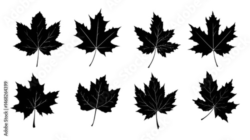 Maple leaf collection simple black silhouette vector isolated on white background -