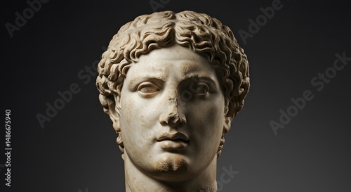 Marble bust of a young man with curly hair, showcasing classical sculpture and artistic craftsmanship, reminiscent of ancient civilizations.