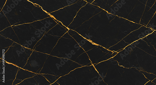 Marble Texture Luxury Black Stone Surface Gold Veins Abstract Background