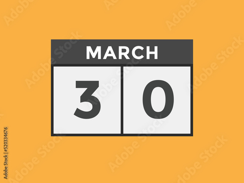 march 30 calendar reminder. 30th march daily calendar icon template. Vector illustration