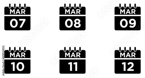 March Calendar Glyph Icon pictogram symbol visual illustration Set