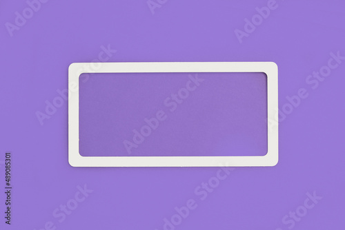 Marco blanco sobre un fondo malva liso y aislado. Vista superior. Copy space
