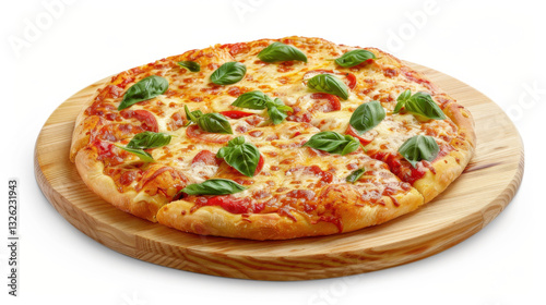 margherita pizza with basil leaf and mozzarella on a wooden table