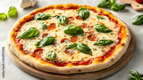 Margherita pizza with fresh basil, embodying simplicity and authentic Italian flavors.