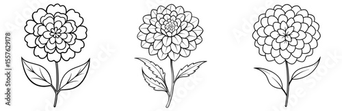 Marigold Flower Icon - Outline, Minimalist, Line Art Floral Symbol