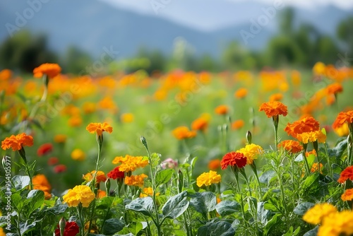 marigolds and nasturtiums flowers fields