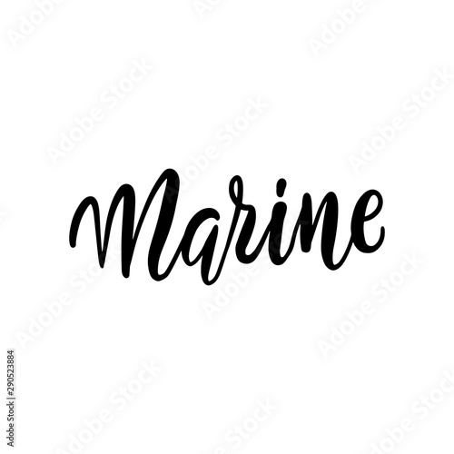 Marine black and white card. Ink brush illustration. Hand drawn lettering. Isolated on white background. Perfect design element. art.