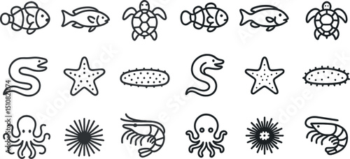 Marine life icons collection for design and decoration projects
