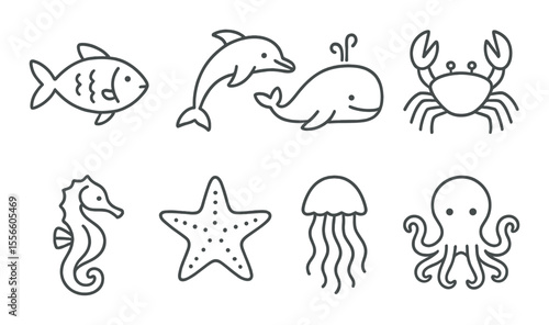 Marine life silhouette icons set – ocean, sea creature and aquatic symbol designs