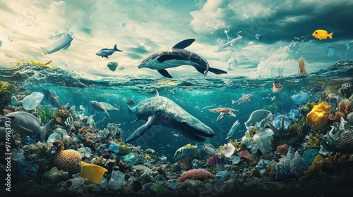 Marine Life Swimming Through a Sea of Plastic Pollution