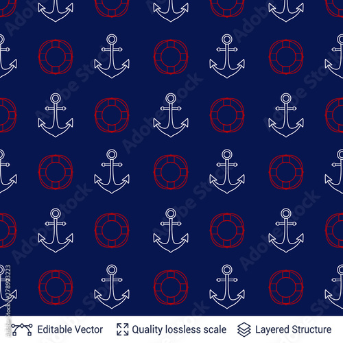 Marine motives seamless pattern design. Vector template.