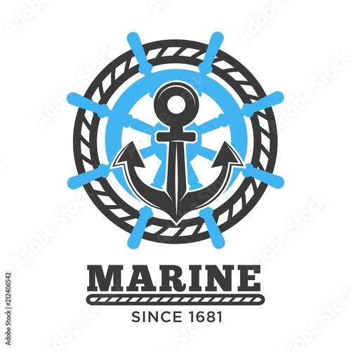 Marine poster with symbols and headline vector illustration