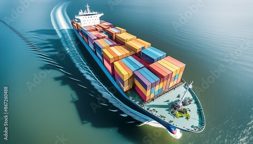 Maritime Transport: Aerial View of Cargo Vessel on the Ocean