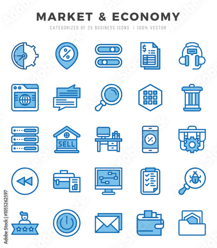 Market & Economy icons set. Vector illustration.
