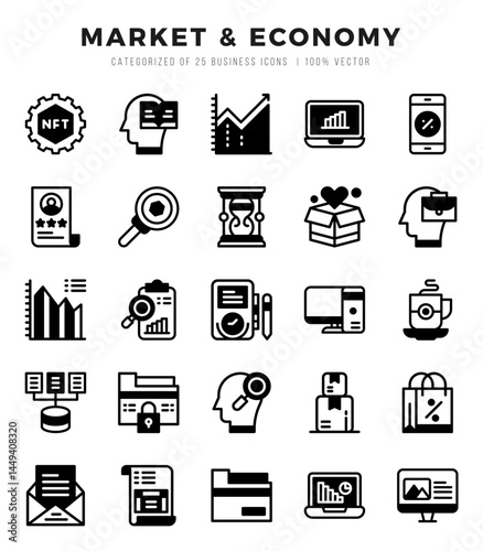 Market & Economy icons set. Vector illustration.