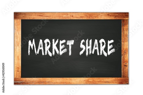 MARKET SHARE text written on wooden frame school blackboard.