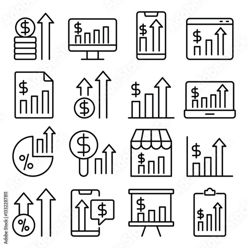 Market Growth icon set. Includes business growth, financial growth, economic growth, sales increase, upward trend, and More. Outline icons vector collection