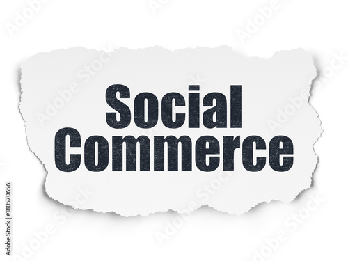 Marketing concept: Painted black text Social Commerce on Torn Paper background with Tag Cloud