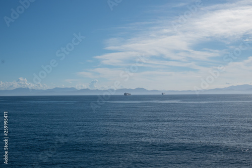 Marlborough Sounds in New Zealand on a clear sunny day - view from the ferry crossing between Wellington and Picton