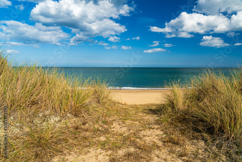 Marram grass on the beach at Winterton in North Norfolk, UK in landscape orientation