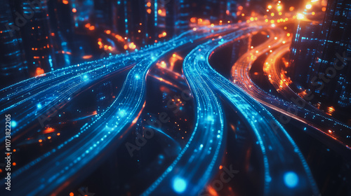 mart digital Innovation city Business skyscrapers in the Financial District with connection network reciprocity over the cityscape. of future smart wireless digital city and social media networking