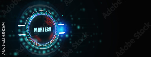 Martech marketing technology concept on virtual screen interface. Business, Technology, Internet and network concept. 3d illustration
