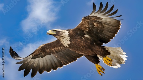 Martial Eagle Flying with Blue Sky Background, Realistic Photo, Pattern Background, Wallpaper, Cover and Screen for Smartphone, Cell Phone, Computer, Laptop