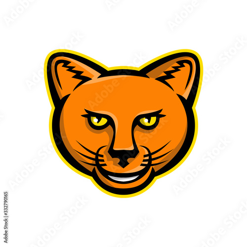 Mascot icon illustration of head of a smiling puma, cougar, panther or mountain lion viewed from front on isolated background in retro style.