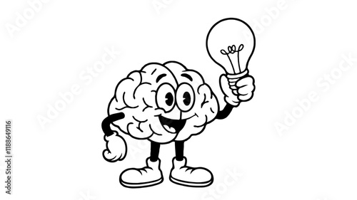 Mascot Logo of a Cartoon Brain Wearing Gloves and White Shoes, Holding a Light Bulb coloring book Generative AI