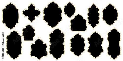 Mashrabiya collection.Arabic window and islamic doors frame shape set. Oriental architecture elements.