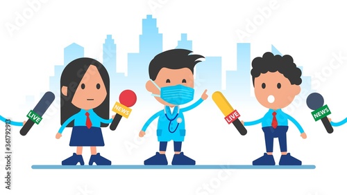 Masked doctor gives new pandemic information for a group of journalists.