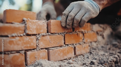 Mason building a brick wall at a construction site. Featuring precision and craftsmanship