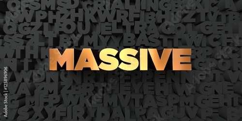 Massive - Gold text on black background - 3D rendered royalty free stock picture. This image can be used for an online website banner ad or a print postcard.