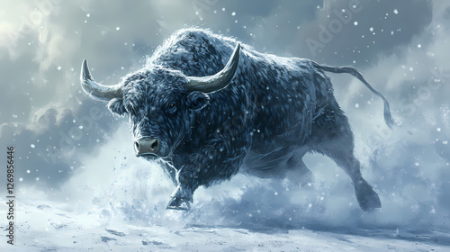 massive bull frozen plain
