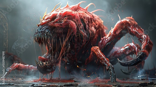Massive creature lurks in a dark fantasy realm, showcasing intricate details and dynamic colors at dusk